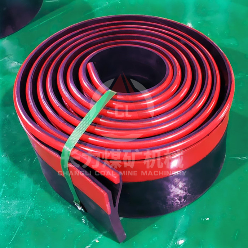 防溢裙板是皮帶機的降塵裝置,外觀來看是一種黑紅色的帶狀橡膠板,簡單來說它是橡膠與聚氨酯的復(fù)合體。皮帶機噴霧裝置也可以起到降塵作用,但是降塵區(qū)域有限,只能減少機頭部分的灰塵,安裝防溢裙板之后可密封整條皮帶機。把皮帶機運輸物料時產(chǎn)生的大量灰塵密封在導(dǎo)料槽里。